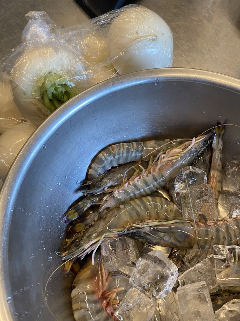 その中でも特に目を引いたのが、立派な「海老芋」と「車海老」、そして瑞々しい「かぶ」でした。