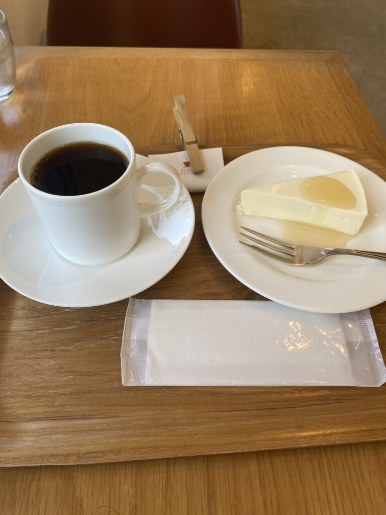 まずは温かいコーヒーをいただき、添えられたレアチーズケーキをひと口。