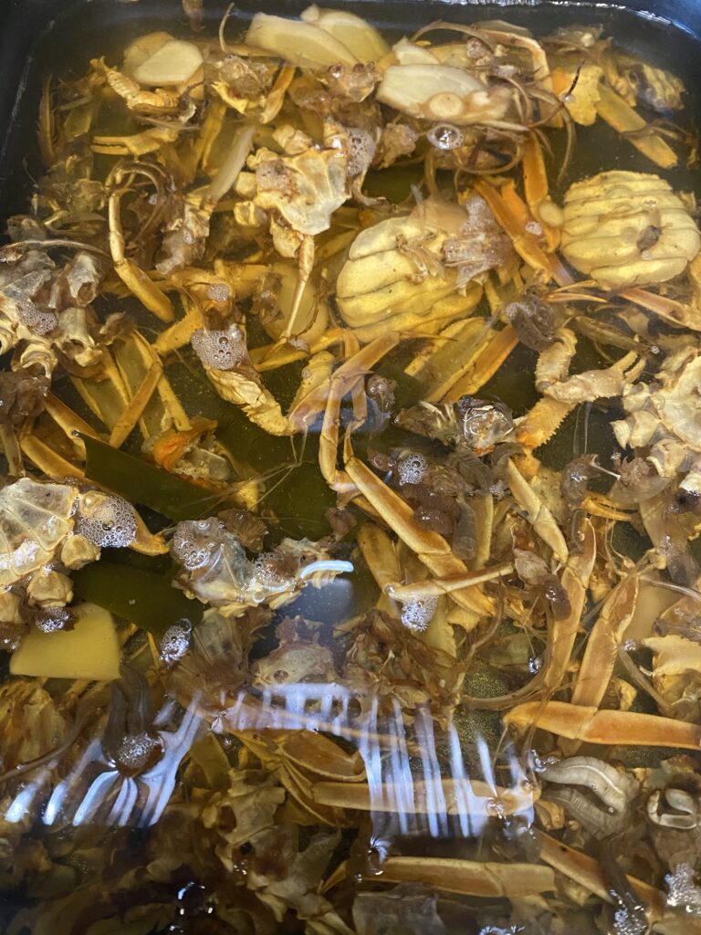 こちらは殻から出汁を取ってそれをご飯やエスプーマにしていきます