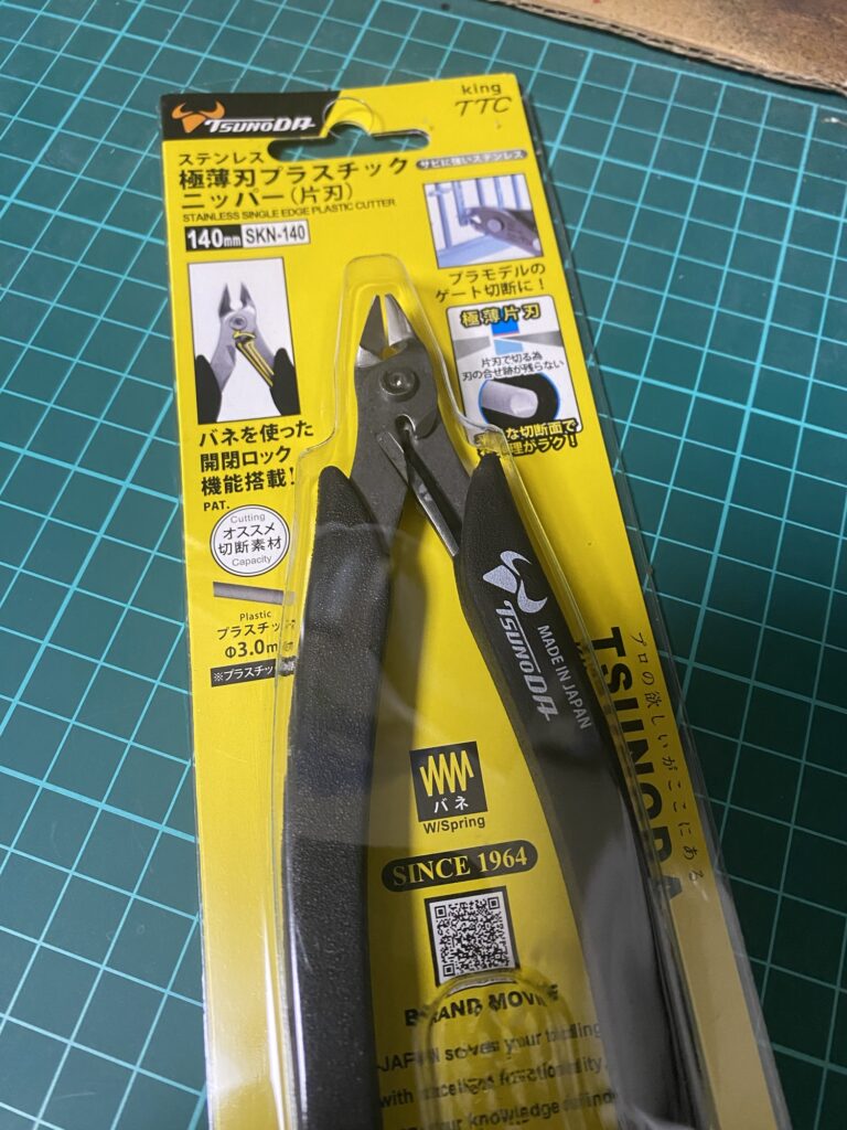 ツノダの極薄刃プラスチックニッパー(片刃)。