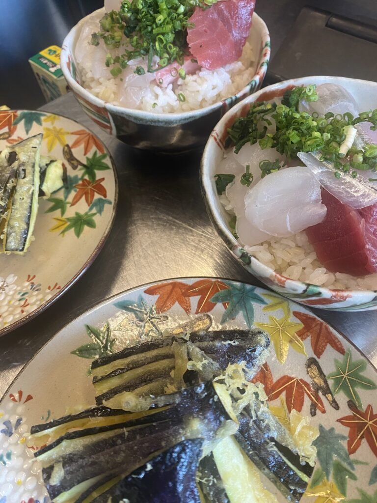 マグロと白身を軽く乗せて、たっぷりの青ネギ。